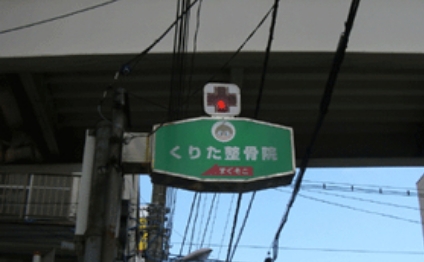 すぐ前方に当院の看板と電光掲示板が見えます。