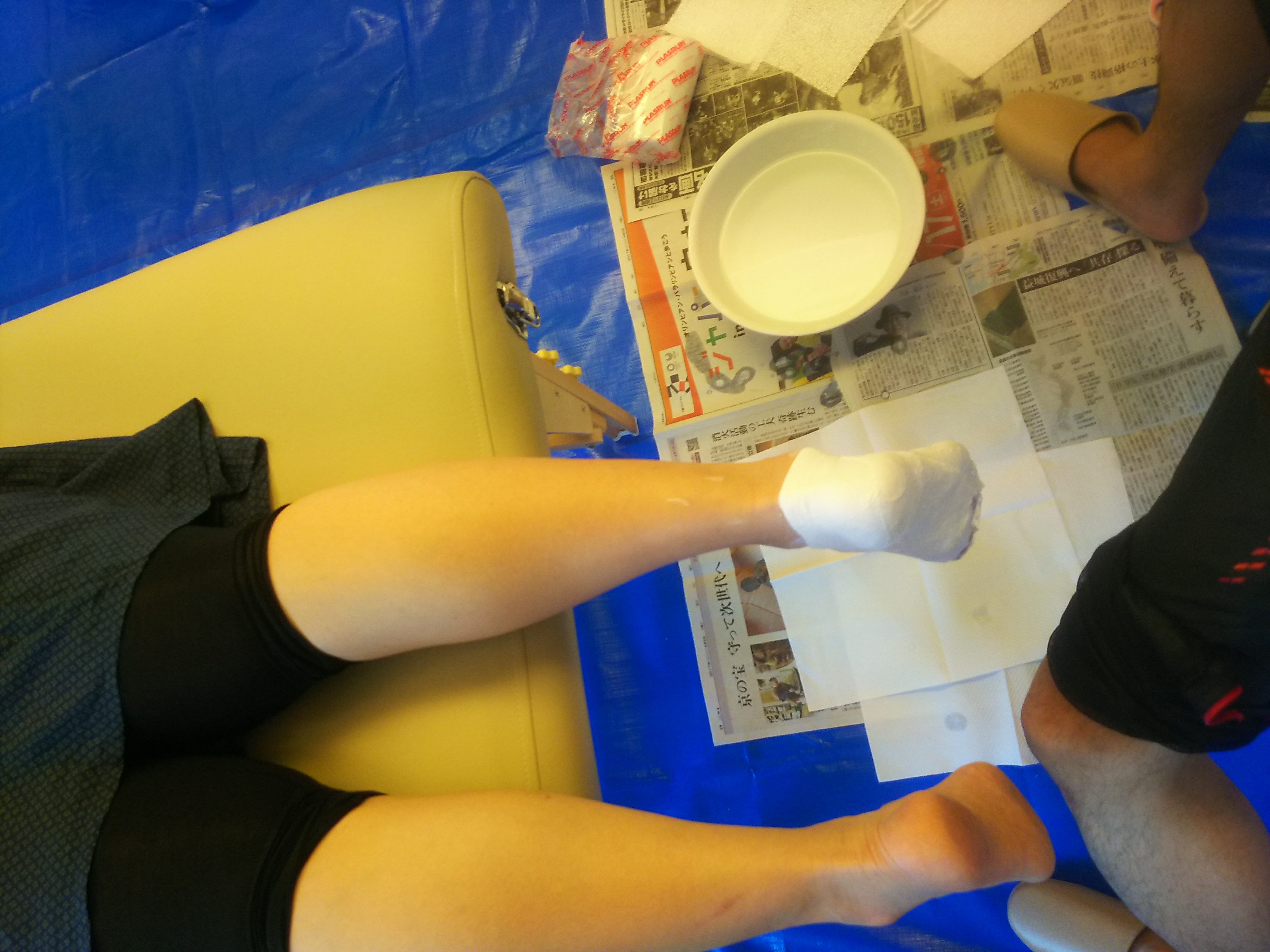 スポンジのようなものに立ち,立ったまま足型を採る方法を行いますが,