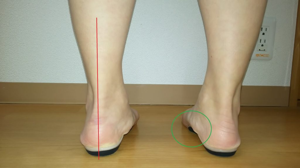 踵の軸と下腿の中心軸がずれている方は,足首が内側に落ちることにより
