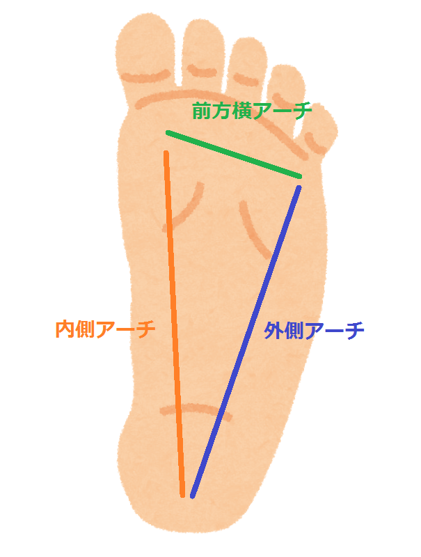 人間は,内側縦アーチ・外側縦アーチ・横のアーチ